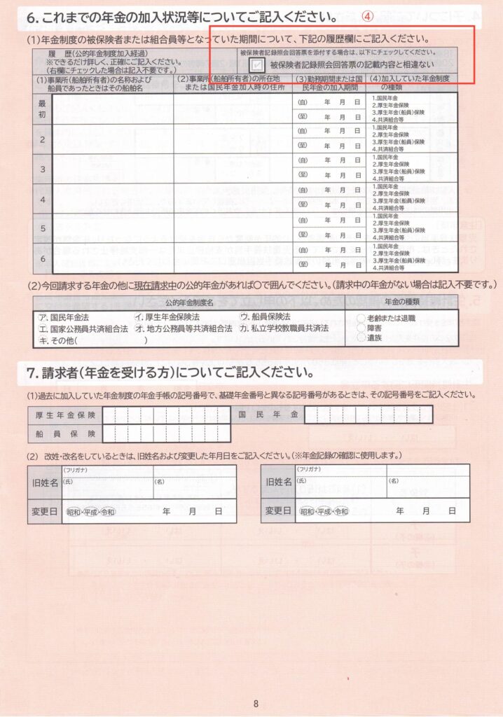 もちろん被保険者記録照会回答票の内容を確認したうえで、ということにはなりますが、☑ ひとつでOKですから、便利ですよね。